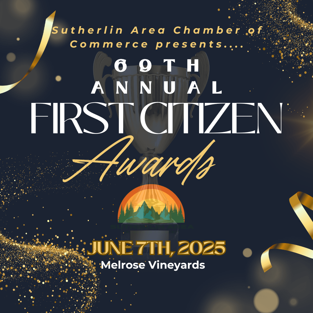 The Sutherlin Area Chamber of Commerce invites you to join in the celebration of our community!! The 69th Annual First Citizens Award banquet is the best of the best, featuring Man and Woman of the year, Inspirational Leader, Outstanding Service, and Outstanding Area Business!!